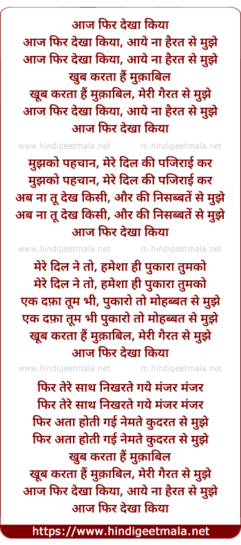 Lyrics of Aaj Phir Dekha Kiya - आज फिर देखा किया