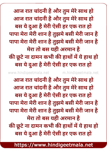 Lyrics of Aaj Raat Chandni Hai (Sad) - आज रात चांदनी है और तुम मेरे साथ हो