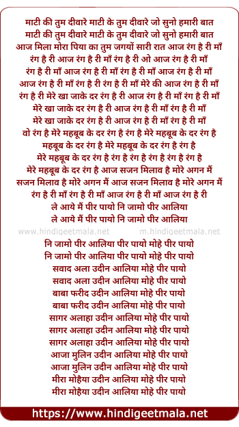 rang hai ri mere khawaja?? dar rang hai ri aaj rang hai ri maa rang hai ri maa