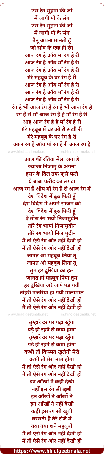 rang hai ri maa aaj rang hai hey maa rang hai ri
