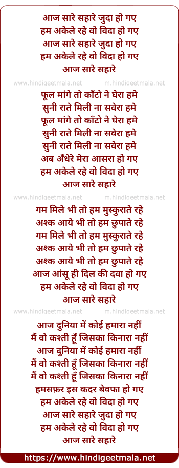 Lyrics of Aaj Saare Sahare - आज सारे सहारे