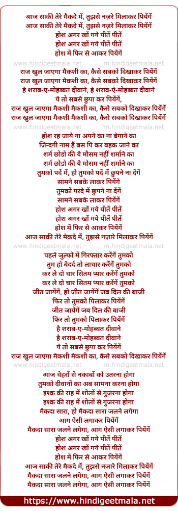 Lyrics of Aaj Saqi Tere Maikade Me - आज साकी तेरे मैकदे में