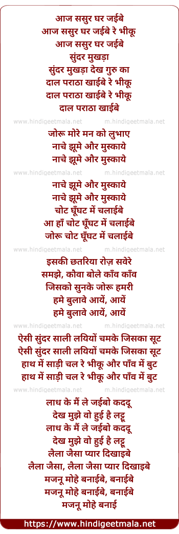 Lyrics of Aaj Sasur Ghar Jaibe Re Bhikhu - आज ससुर घर जईबे
