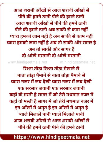 Lyrics of Aaj Sharabi Aankhon Se - आज शराबी आँखों से