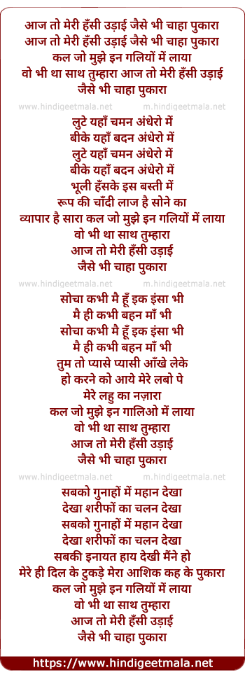 Lyrics of Aaj To Meri Hansi Udai - आज तो मेरी हँसी उड़ाई