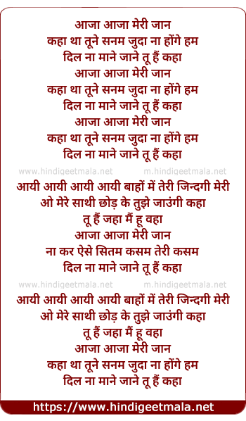 Lyrics of Aaja, Aaja Meri Jaan - आजा आजा मेरी जान