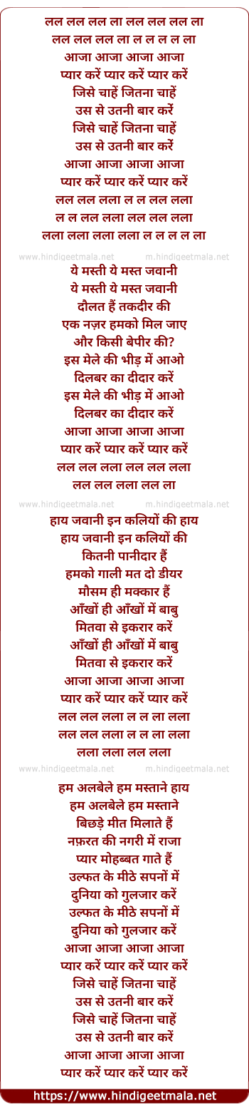 Lyrics of Aaja Aaja Pyar Kare - आजा आजा प्यार करे
