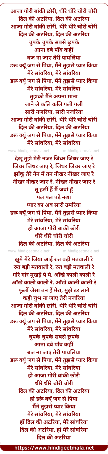 aaja gori baanki chhori, dhire dhire chori chori