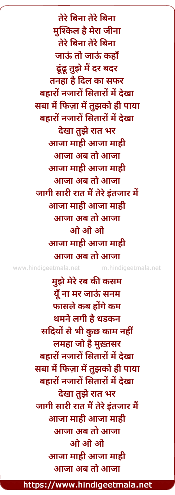 Lyrics of Aaja Maahi, Aaja Maahi, Aaja Ab To Aaja - आजा माही, आजा माही, आजा अब तो आजा