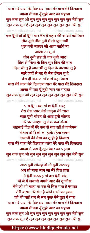 yaara mere yaara mere dildara yaara mere yaara mere dildara