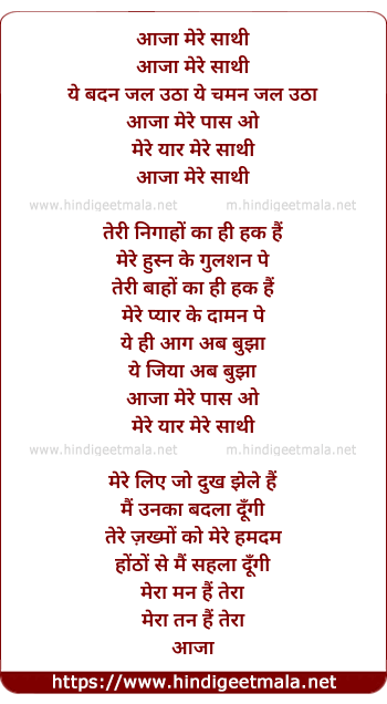 Lyrics of Aaja Mere Mere Yaar - आजा मेरे मेरे यार