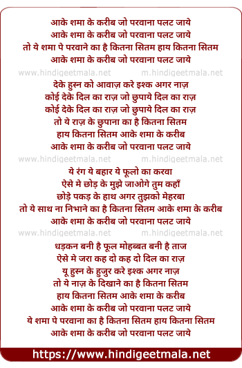 Lyrics of Aake Shamma Ke Karib Jo Parvana Palat Jaye - आके शमा के करीब जो परवाना पलट जाये