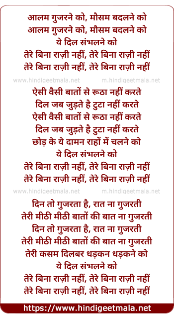 Lyrics of Aalam Gujarane Ko, Mausam Badalane Ko - आलम गुजरने को, मौसम बदलने को