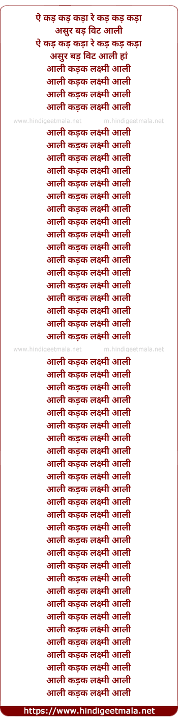 Lyrics of Aali Kadak Laxmi Aali - आली कड़क लक्ष्मी आली
