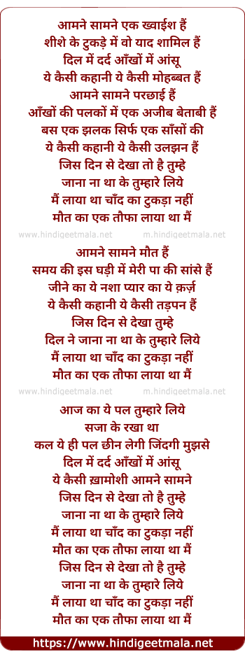 Lyrics of Aamne Samne - आमने सामने एक ख्वाईश हैं