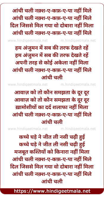 Lyrics of Aandhi Chali Toh - आंधी चली नक़्श-ए-कफ़-ए-पा नहीं मिले