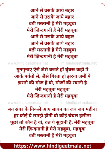 meri zindagani hai meri mahabuba, mahabuba