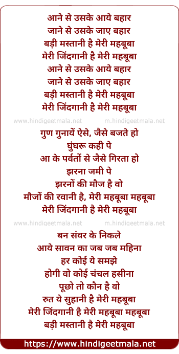 Lyrics of Aane Se Uske Aaye Bahar (3) - आने से उसके आये बहार