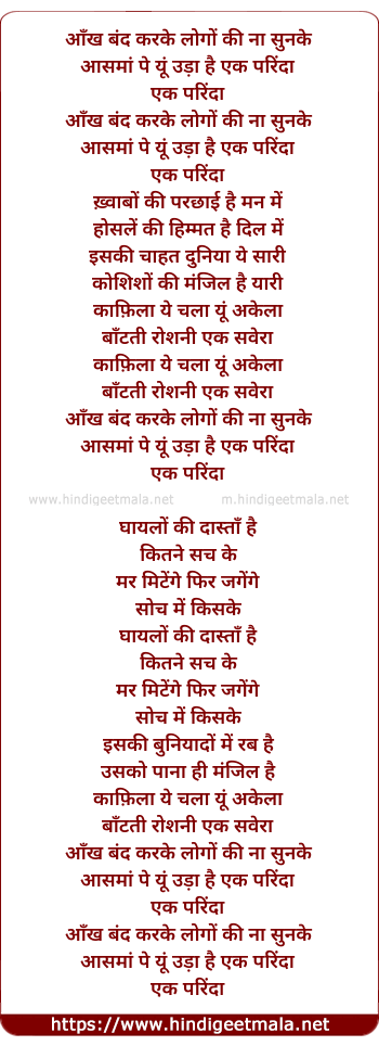 Lyrics of Aankh Band Karke Logo Ki Na Sunke - आँख बंद करके लोगों की ना सुनके