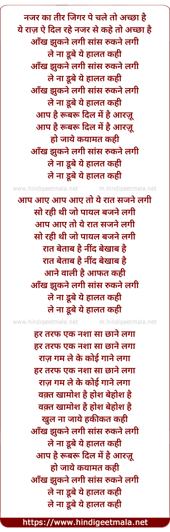 Lyrics of Aankh Jhukne Lagi - आँख झुकने लगी