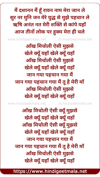 Lyrics of Aankh Micholi Aisi Mujhse Khele Kyu Yaha - आँख मिचोली ऐसी मुझसे खेले क्यूँ यहाँ