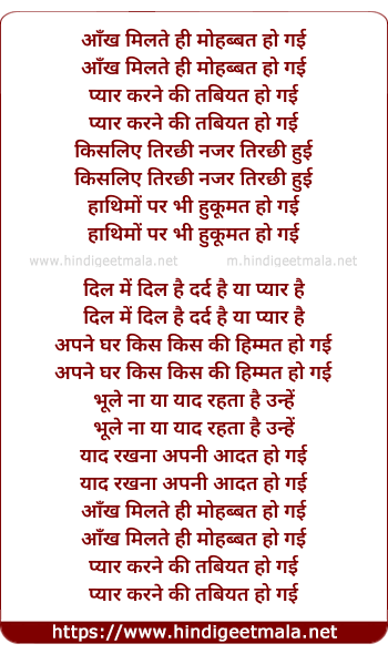 Lyrics of Aankh Milate Hi Mohabbat Ho Gayi - आँख मिलते ही मोहब्बत हो गई