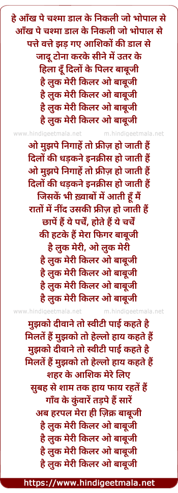 Lyrics of Aankh Pe Chashma Daal Ke - आँख पे चश्मा डाल के