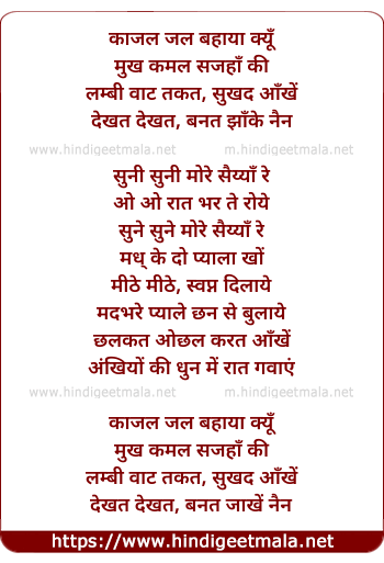 Lyrics of Aankhein - काजल जल बहाया क्यूँ