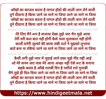 Lyrics of Aankho Ka Kajal Karta Hai Pagal - आँखों का काजल करता है पागल