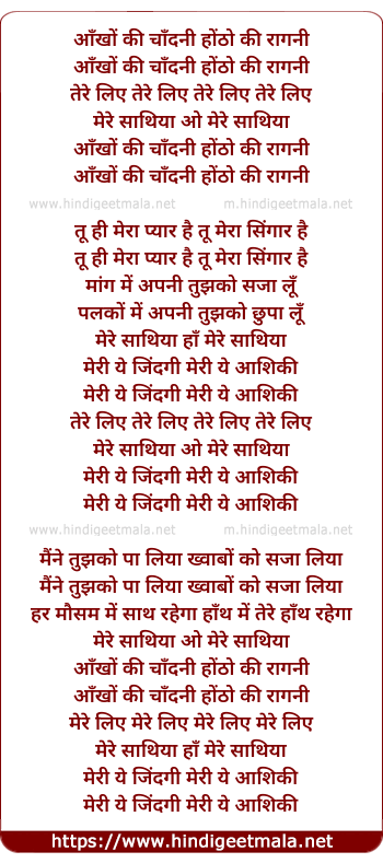 Lyrics of Aankho Ki Chandni Hotho Ki Ragini - आँखों की चाँदनी होंठो की रागनी