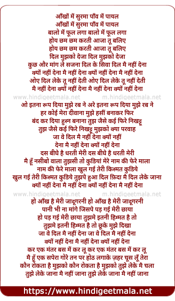 Lyrics of Aankho Me Surma, Paanv Me Payal, Baalo Me Phool Laga - आँखों में सुरमा, पाँव में पायल, बालो में फूल लगा