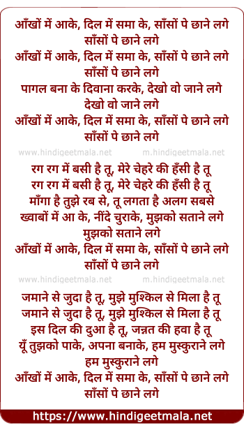 Lyrics of Aankho Mein Aake - आँखों में आके