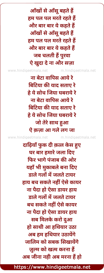 Lyrics of Aankho Se Aanshu Behte Hai (Teri Yaad) - आँखों से आँसू बहते हैं
