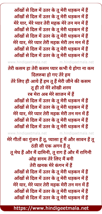 Lyrics of Aankho Se Dil Me Utar Ke - आँखों से दिल में उतर के