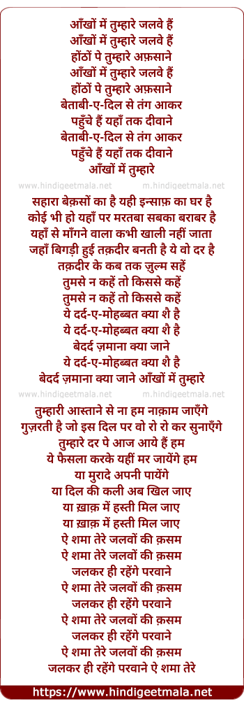 Lyrics of Aankhon Me Tumhare Jalwe Hai - आँखों में तुम्हारे जलवे हैं