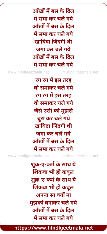 Lyrics of Aankhon Mein Bas Ke Dil Me - आँखों में बस के दिल