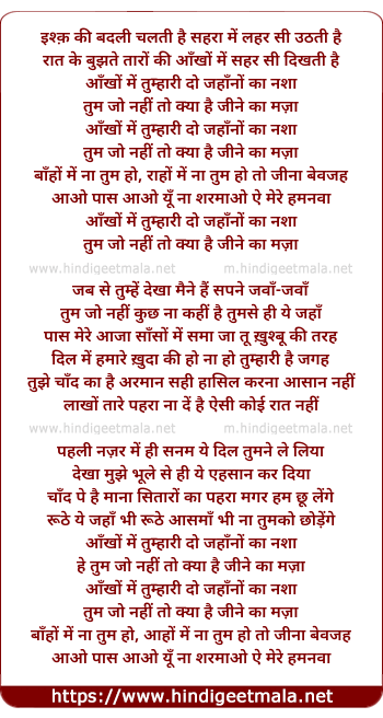 Lyrics of Aankhon Mein Tumhari - आँखों में तुम्हारी