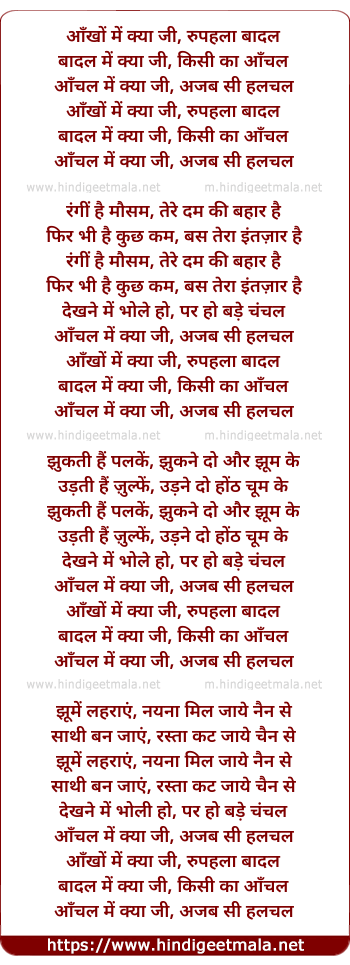 Lyrics of Aankhon Me Kya Ji, Rupahla Badal - आँखों में क्या जी, रुपहला बादल