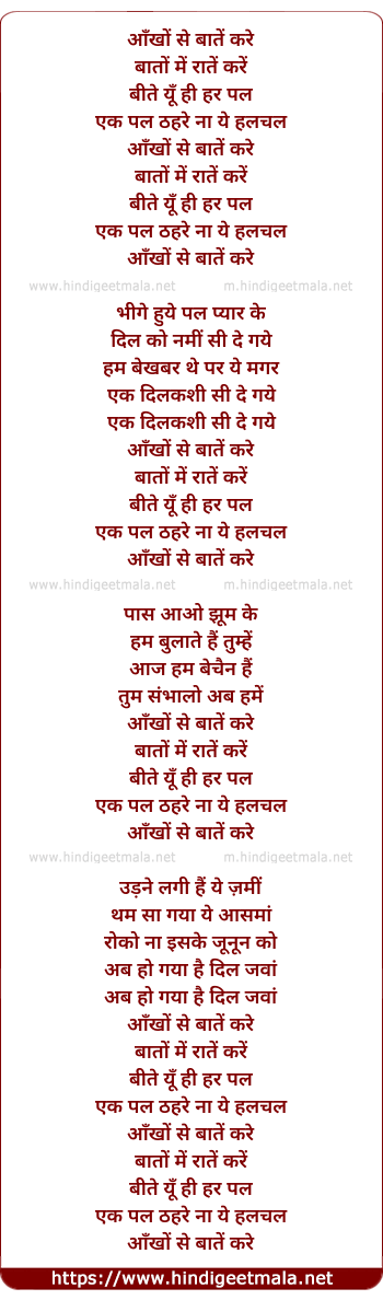 Lyrics of Aankhon Se Baatein Kare - आँखों से बातें करे
