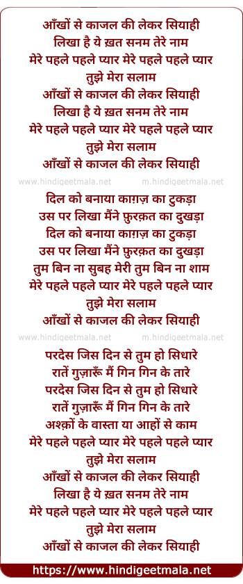 Aankhon Se Kaajal Ki Lekar Siyaahi - आँखों से काजल की लेकर सियाही