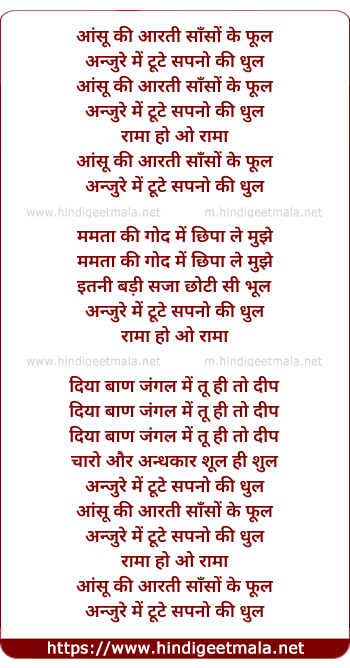 Lyrics of Aansoon Ki Aartii - आंसू की आरती