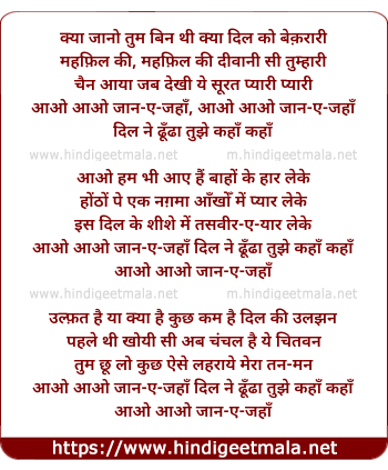 Lyrics of Aao Aao Jaan-E-Jahan Kya Jano - आओ आओ जान-ए-जहाँ क्या जानो