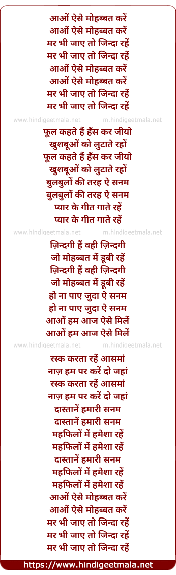 Lyrics of Aao Aise Mohabbat Kare - आओं ऐसे मोहब्बत करें