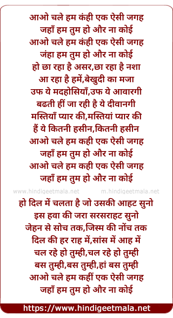 Lyrics of Aao Chale Ham Kahee Ek Aisee Jagah