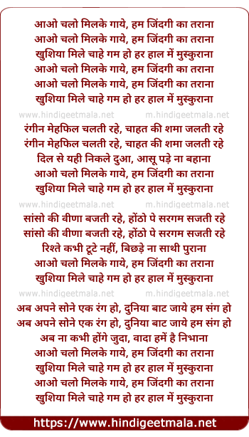 aao chalo milke gaye, hum jindagi ka tarana