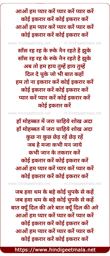 Lyrics of Aao Hum Pyar Kare Pyar Kare - आओं हम प्यार करें प्यार करें