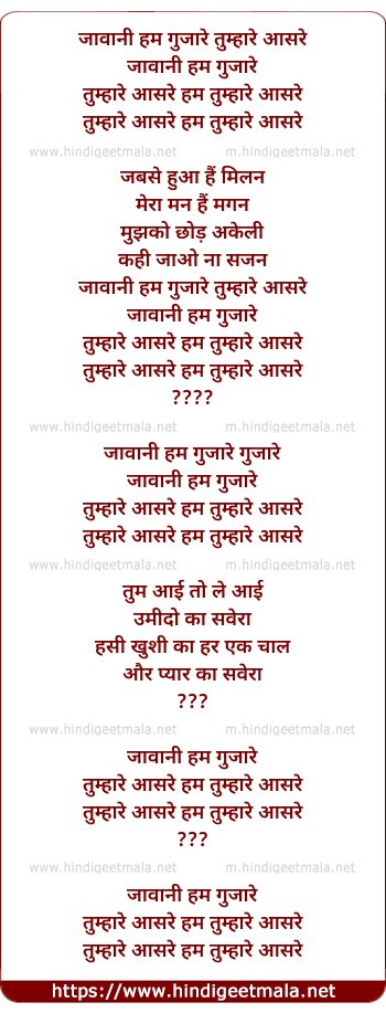Aao Jawani Hum Guzaare Tumhare Aasre - आओ जावानी हम गुजारे तुम्हारे आसरे