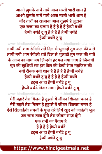 Lyrics of Aao Jhume Nache Gaye, Aaj Masti Bhari Sham Hai - आओ झुमें नाचे गाये, आज मस्ती भरी शाम है