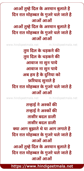 Lyrics of Aao Ke Tumhe Dil Ke Arman Bulate Hai - आओं के तुम्हे दिल के अरमान बुलाते है