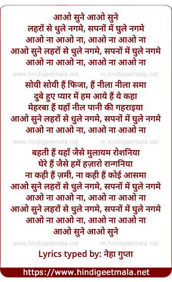 Lyrics of Aao Sunen, Laharon Se Dhule Nagamen - आओ सुने लहरों से धुले नगमे
